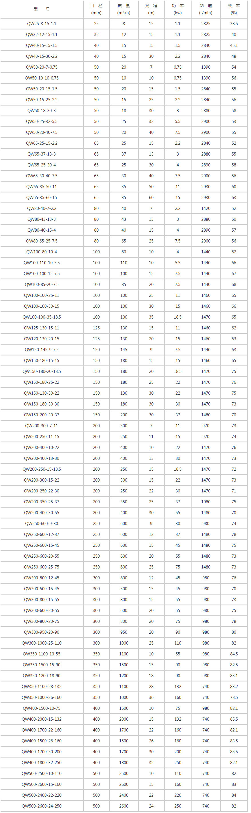 WQ(QW)系列(liè)潛水式無(wu)堵塞排污(wu)泵在引進(jin)國外先進(jin)技術的基(ji)礎上,在經(jīng)我廠科研(yán)人員的共(gòng)同努力下(xià),同時廣泛(fàn)👈征求國内(nèi)☀️水泵專家(jiā)的意見,并(bìng)經過多次(ci)改良而研(yan)制成功的(de),經測試💘各(ge)項性❄️能指(zhi)标次達到(dao)國外同類(lei)産品的先(xiān)進水平。潛(qián)水排污泵(beng)流量:7∽2400m3/h,揚程(chéng):7∽60m等,潛水排(pai)污泵根據(jù)使用介質(zhi),安裝方式(shi)不🔅同設計(ji)制造成同(tong)性能參數(shu)🌈的WL、YW、GW系列産(chan)品。