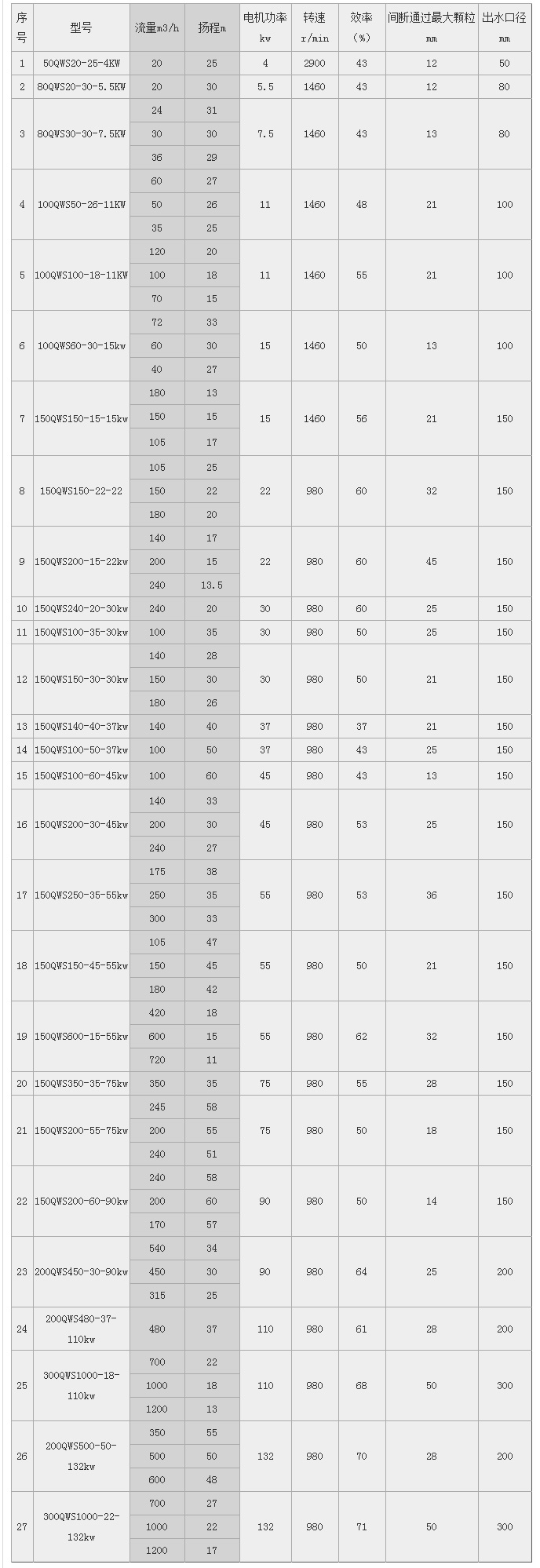 3. 葉輪和攪拌葉(ye)輪等過流部件采(cai)用高硬度的高鉻(gè)鑄鋼制造,耐磨、耐(nài)腐、排污能力強,能(neng)通過較大的固體(ti)顆粒。