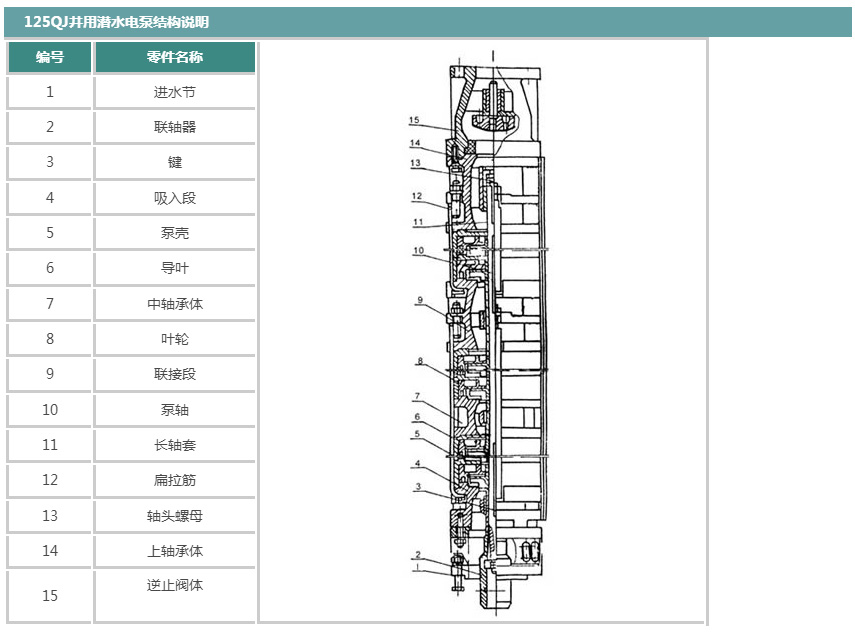 125QJ井用潛水(shuǐ)電泵性能參數(shù)