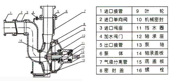 ZW型自吸(xi)式無堵塞排污(wū)泵結構圖: