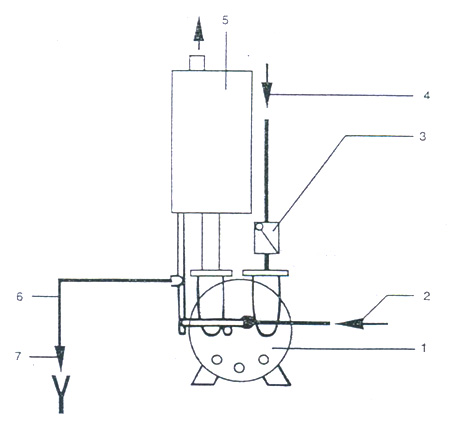 1. 2BV 真空(kong)泵 2. 供水管 3. 逆止閥(fa) 4. 吸氣管 5. 氣水分離(li)器 6. 排氣管 7. 溢水管(guan)