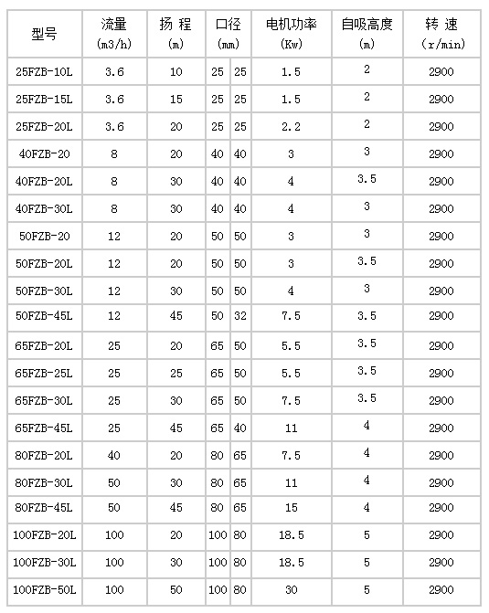 技(jì)術參數: FZB型氟塑(su)料自吸化工泵(bèng)